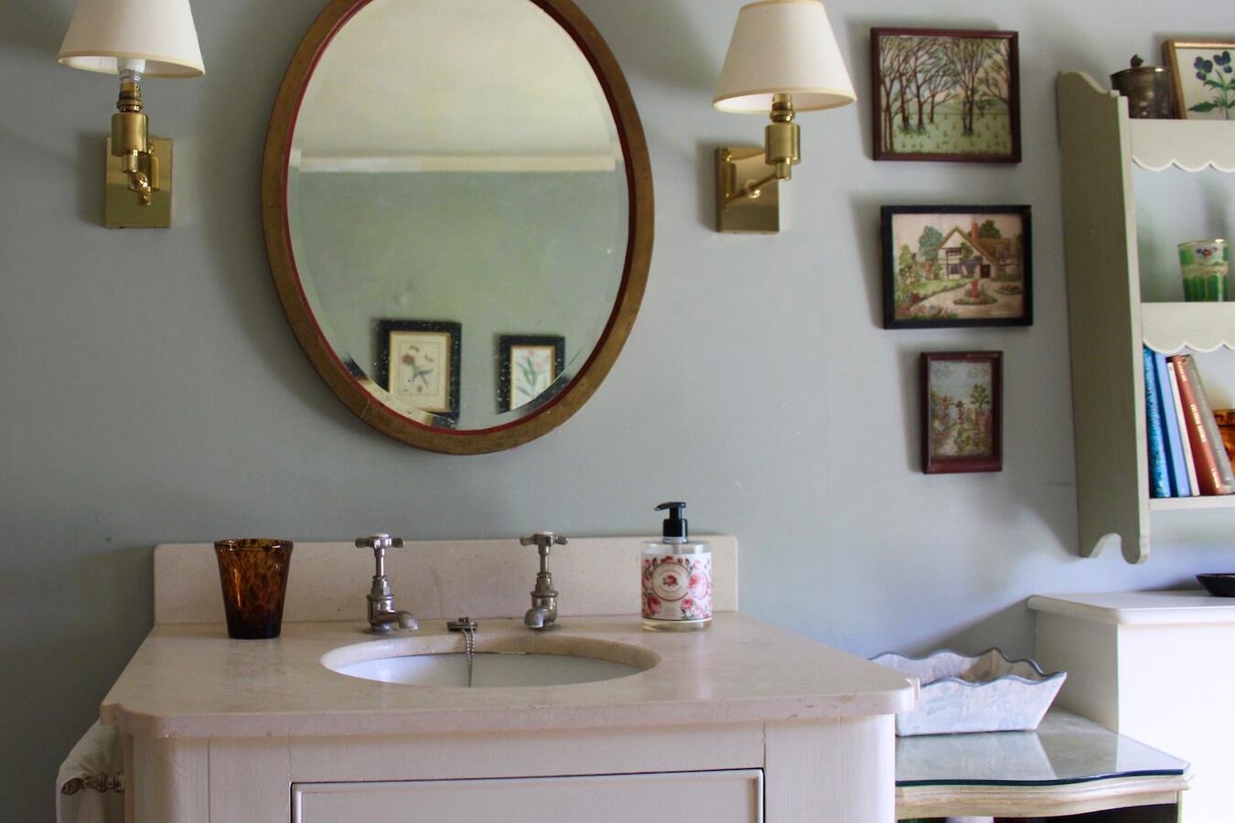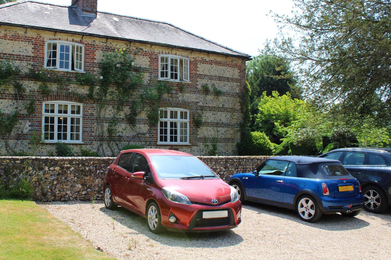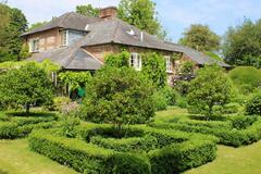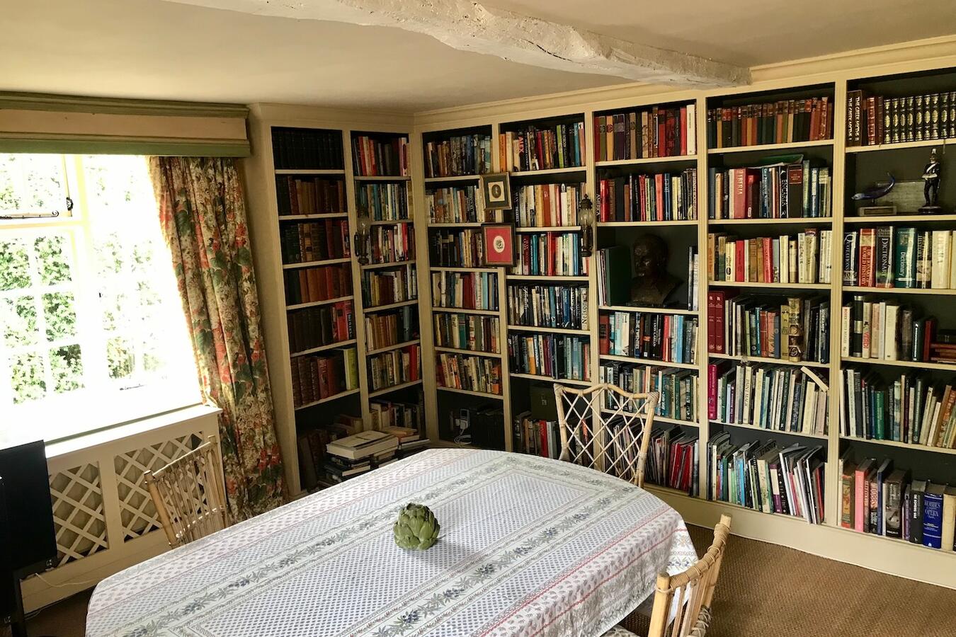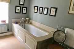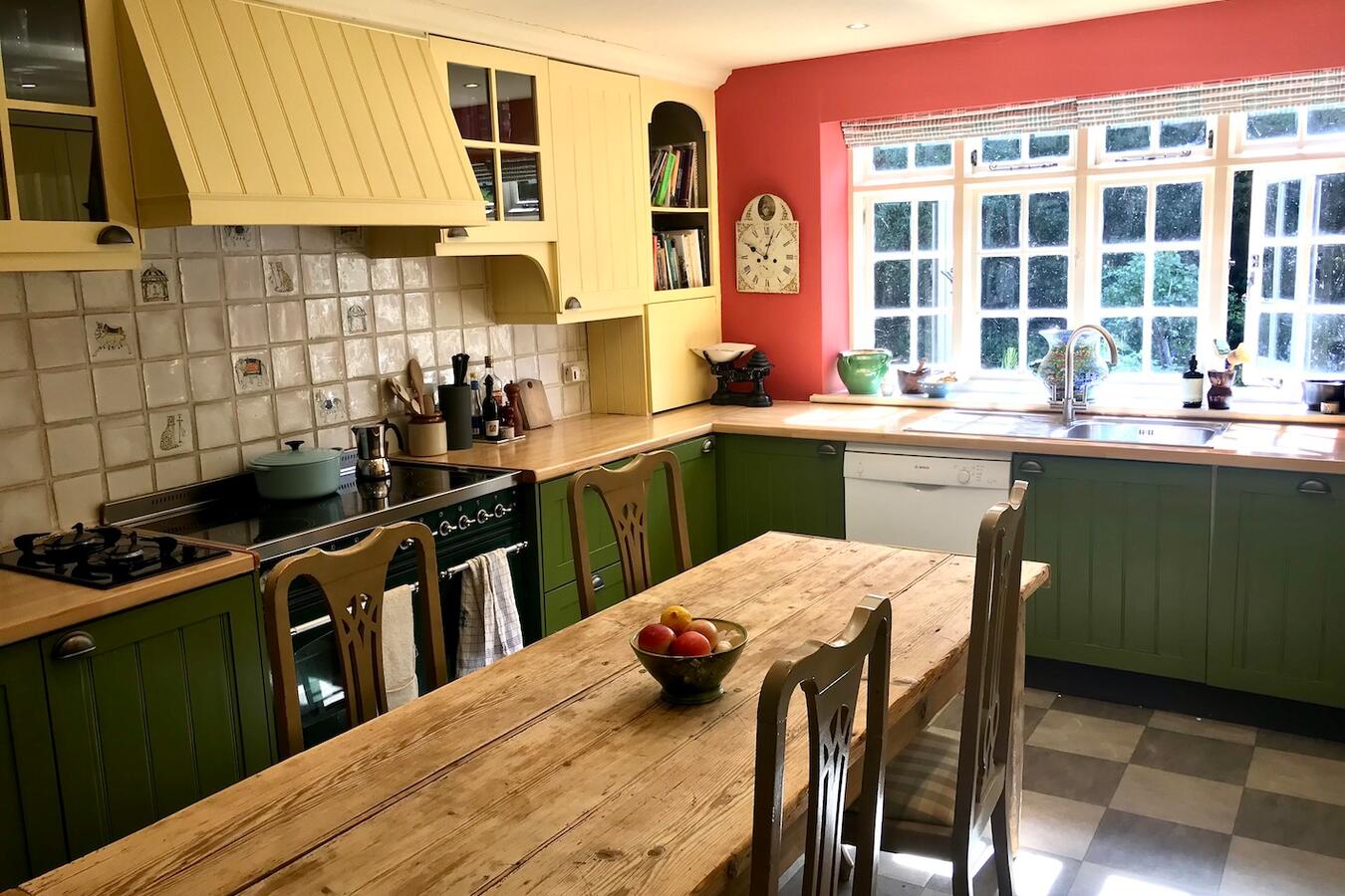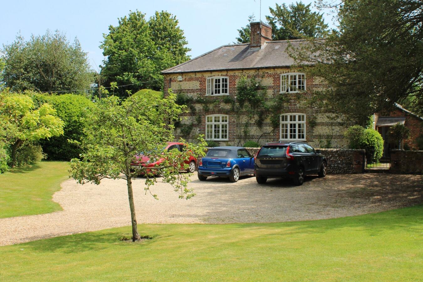 The 3 bedroom house provides a kitchen, dining room, sitting room, library, porch, and two bathrooms. Interiors feature exposed beams, traditional fireplaces, a country kitchen and lived-in décor suitable for heritage shoots, interviews and editorial content.