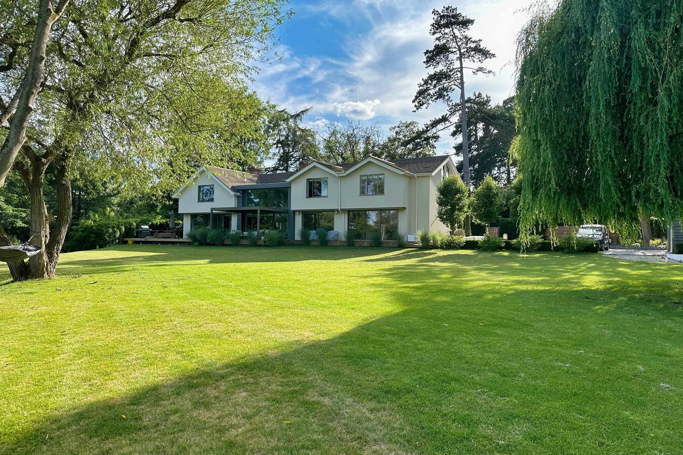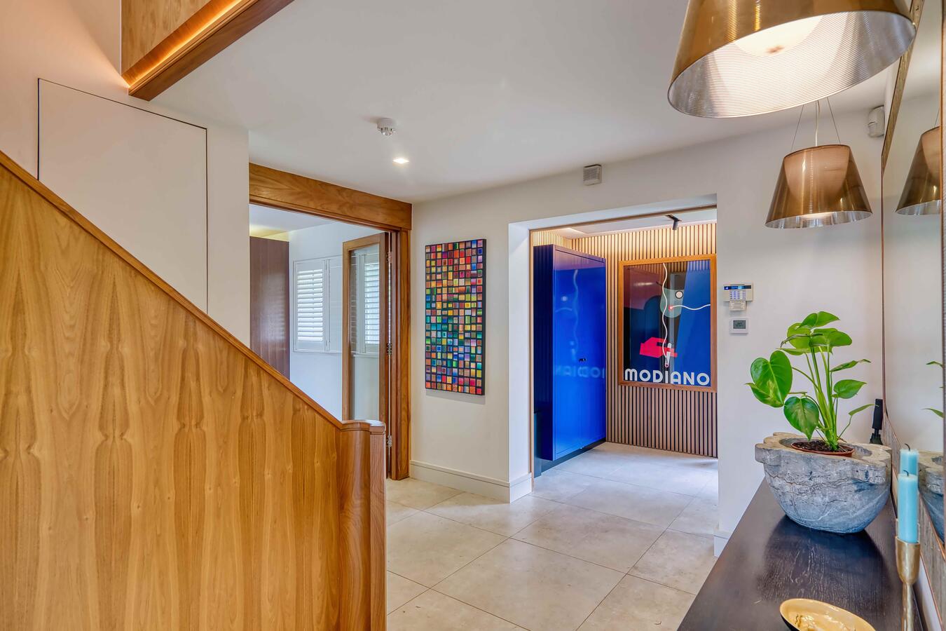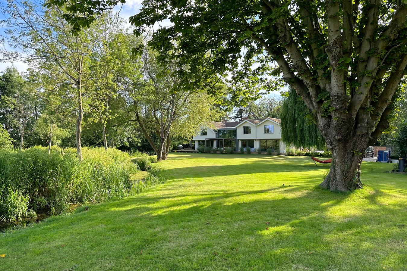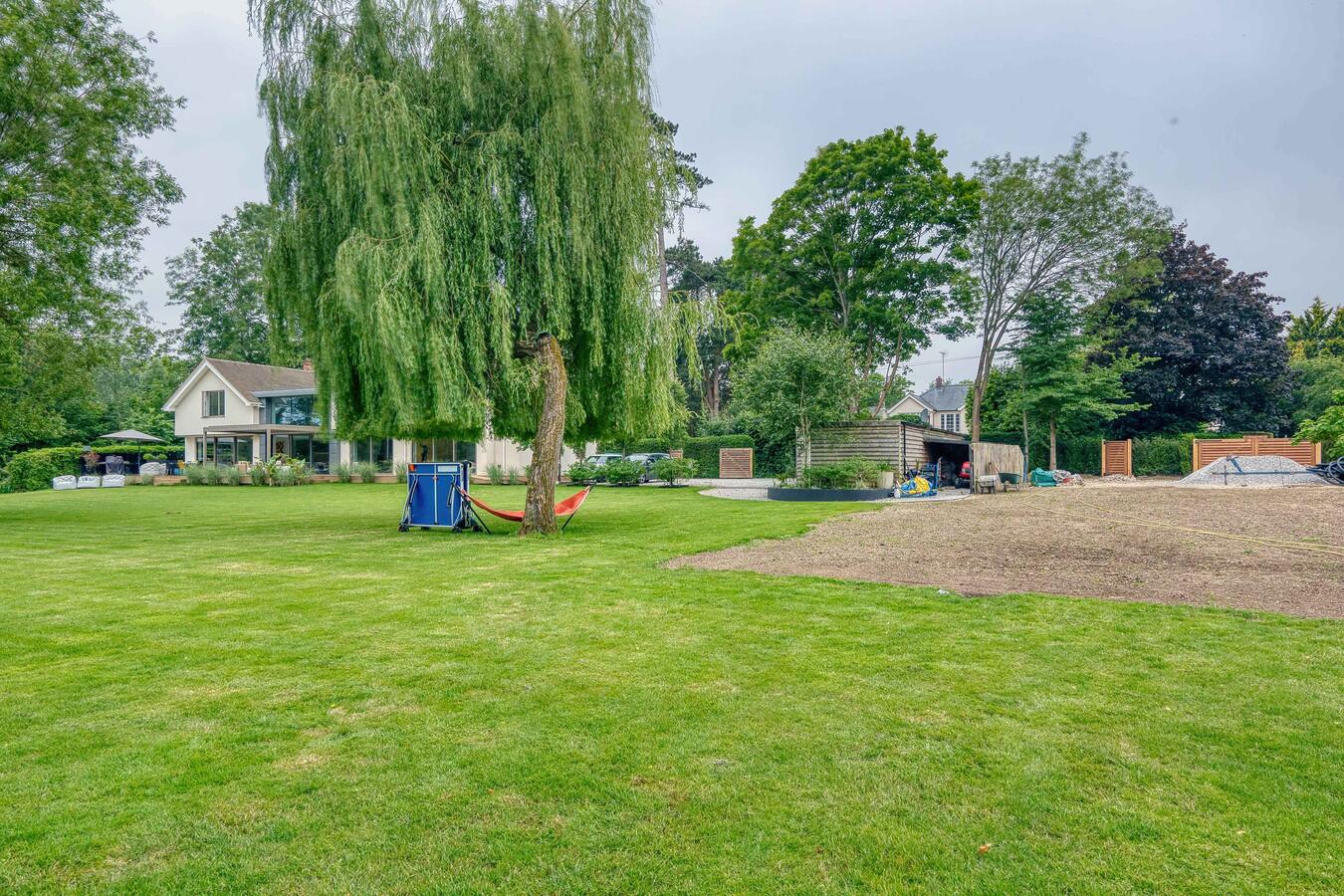 Upstairs, five double bedrooms and four bathrooms provide scale and comfort, including a standout double-height principal suite with open dressing area and garden views. Outside, around an acre of manicured lawn wraps around the house, with a stream, mature trees and over 80sqm of Millboard decking - ideal for lifestyle, family, garden or summer campaign shoots.
