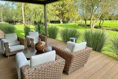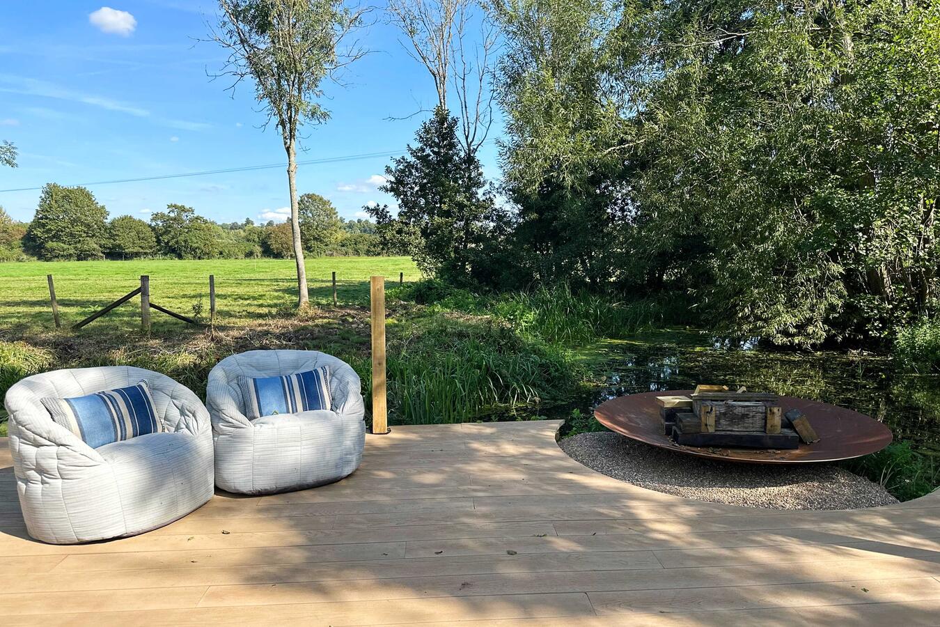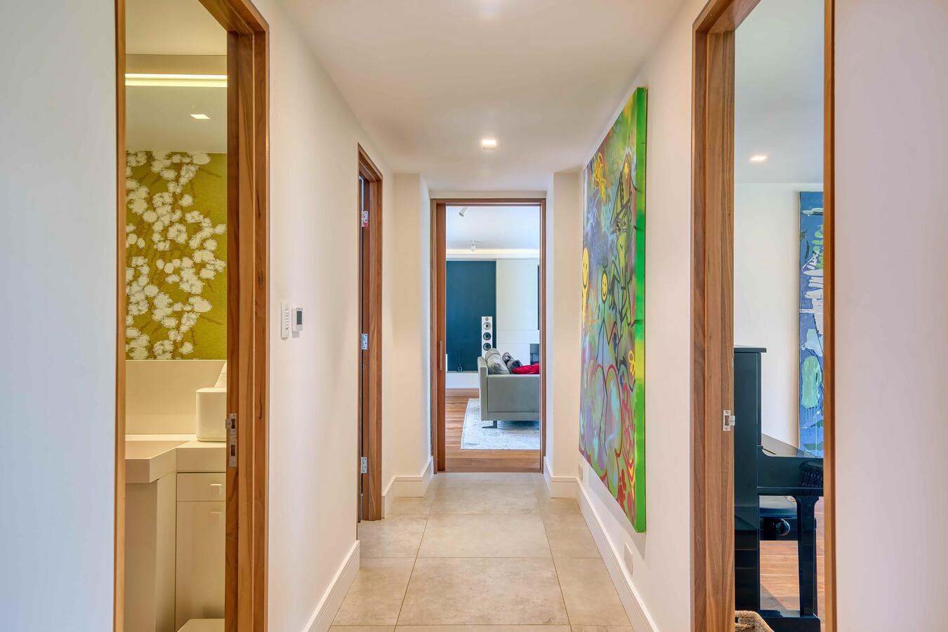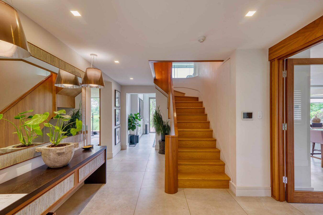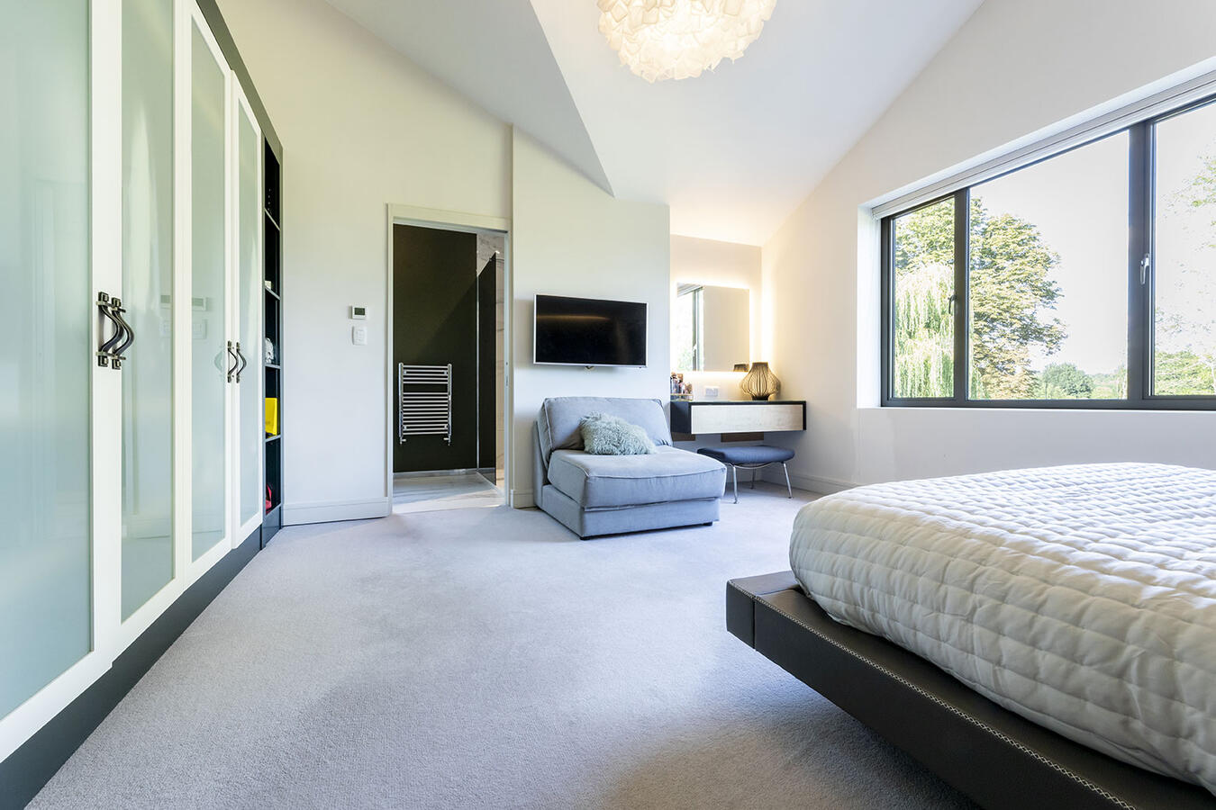 Upstairs, five double bedrooms and four bathrooms provide scale and comfort, including a standout double-height principal suite with open dressing area and garden views. Outside, around an acre of manicured lawn wraps around the house, with a stream, mature trees and over 80sqm of Millboard decking - ideal for lifestyle, family, garden or summer campaign shoots.