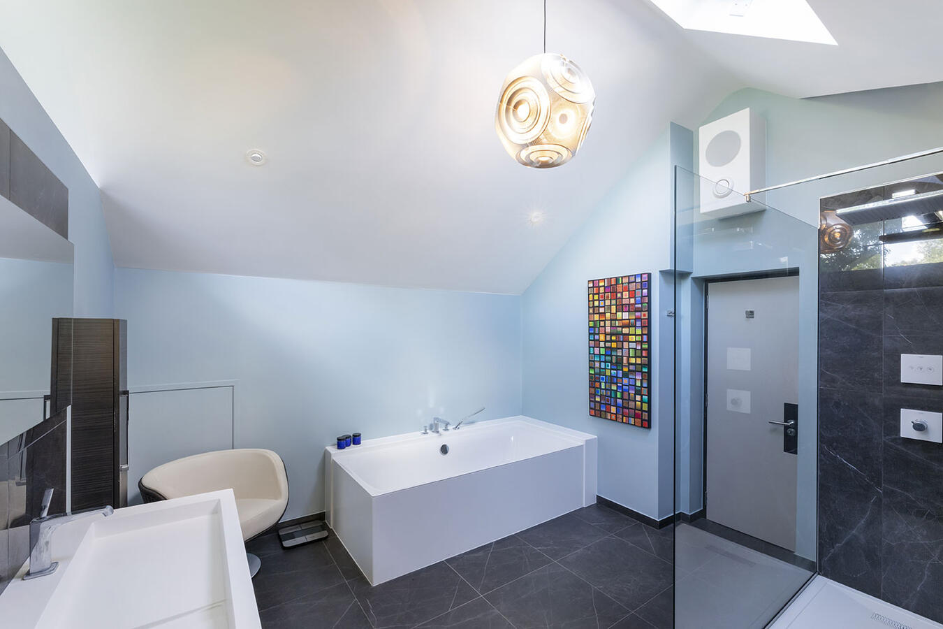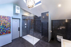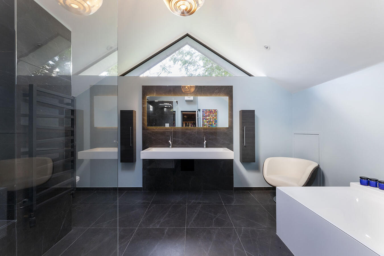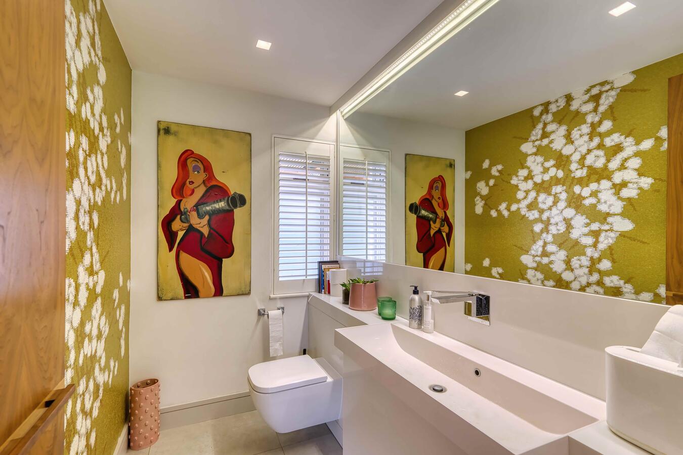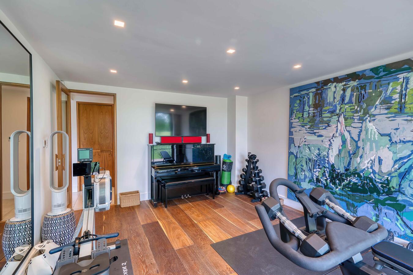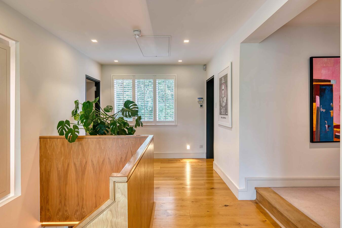 A bright, modern home with over 4,500 sq ft of versatile shoot space. Flooded with natural light and surrounded by greenery, this contemporary property offers a fantastic mix of open-plan living, clean lines and impressive architectural features. The ground floor flows beautifully for filming, with a sleek modern kitchen, double-height living space with floor-to-ceiling glazing, spacious dining area and a generous bar/entertaining zone. There's also a large sitting room, home office, home gym, utility and WC / bathroom - plenty of room for crew, kit and multiple setups.