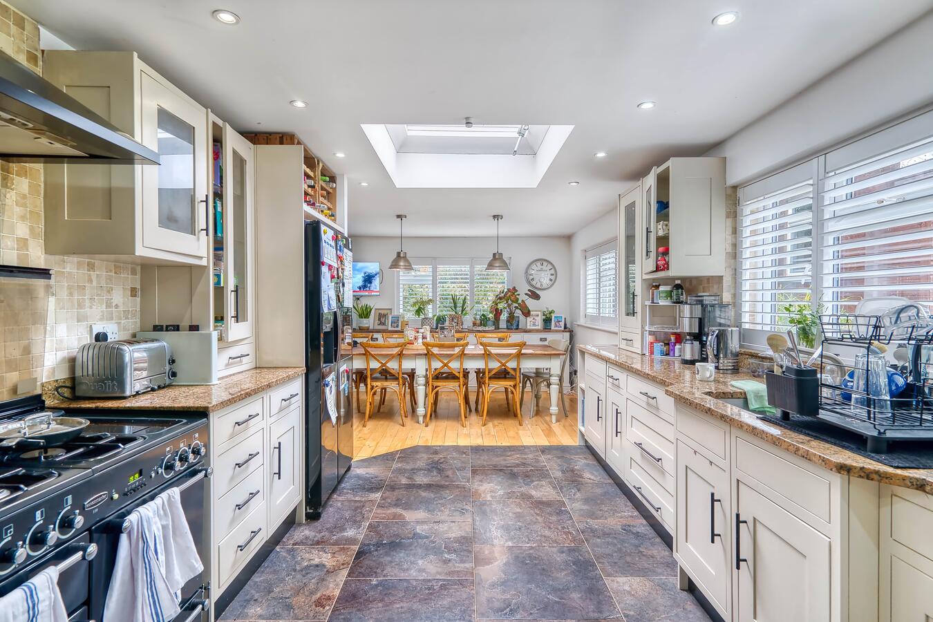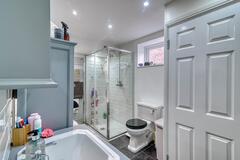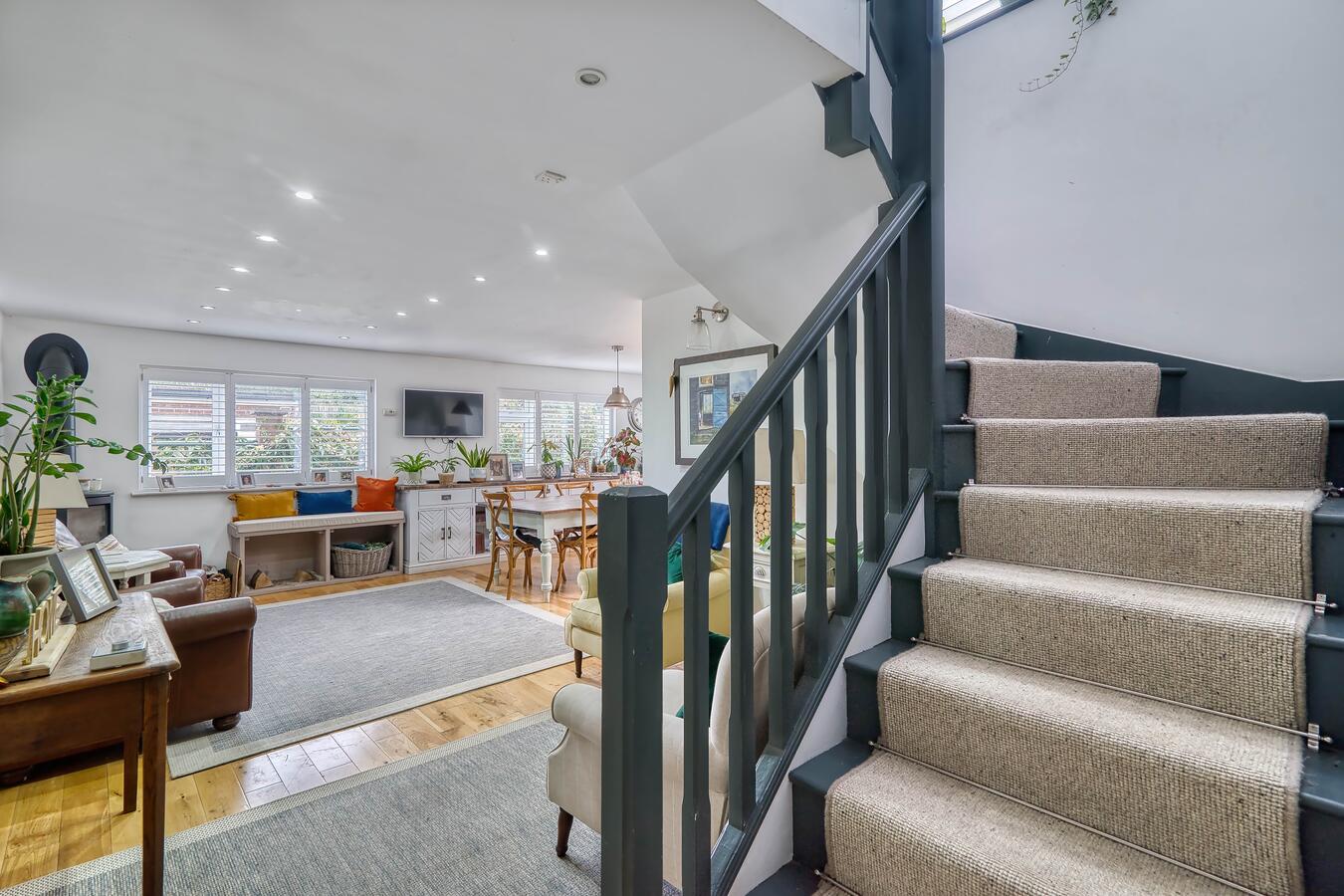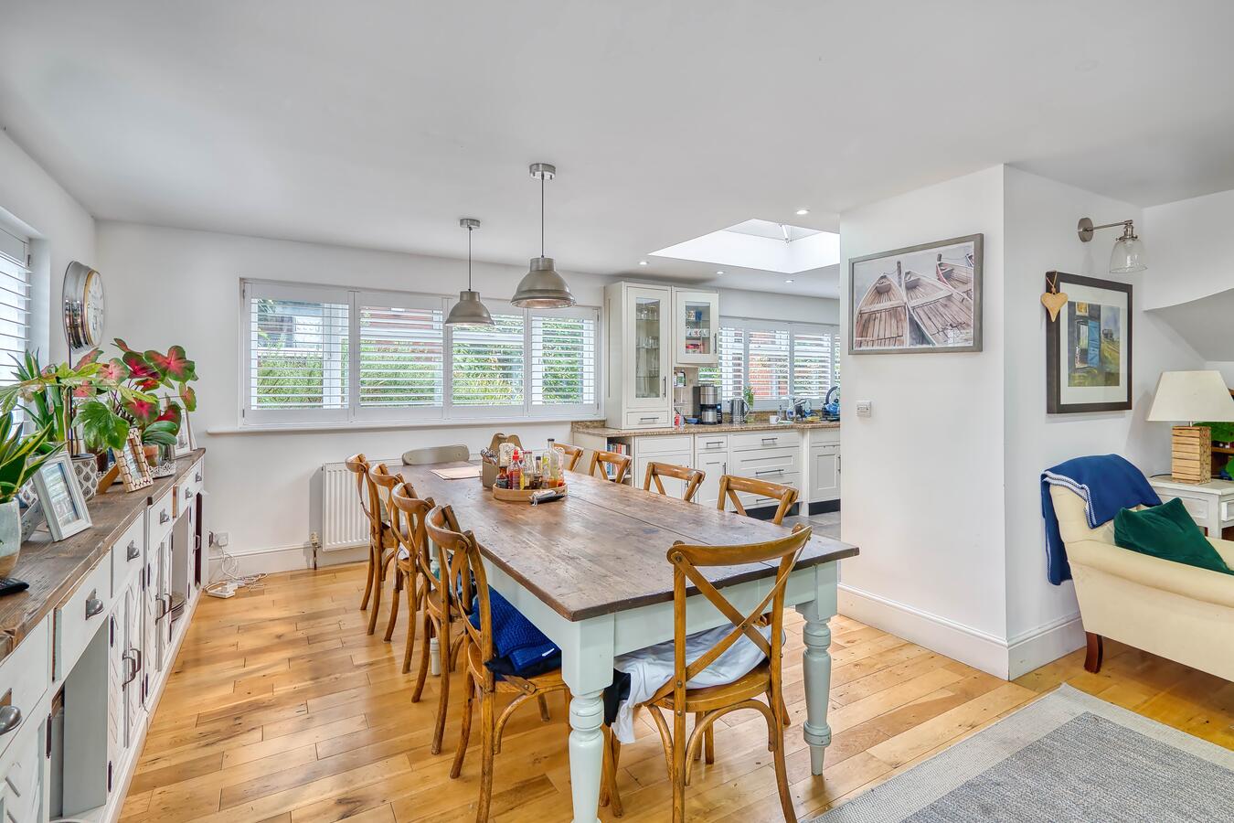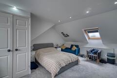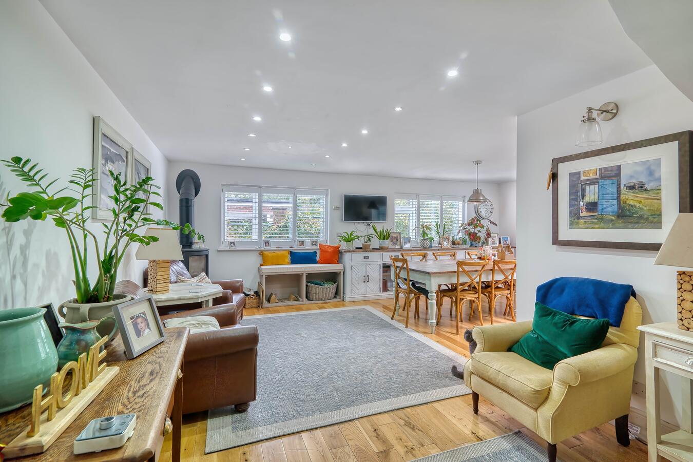 A warm and versatile family home in Hertfordshire available for film, TV dramas, music videos and photography shoots. This spacious chalet bungalow offers four bedrooms (one currently used as a home office) and four bathrooms, with the master bedroom conveniently located on the ground floor and two additional bedrooms upstairs.