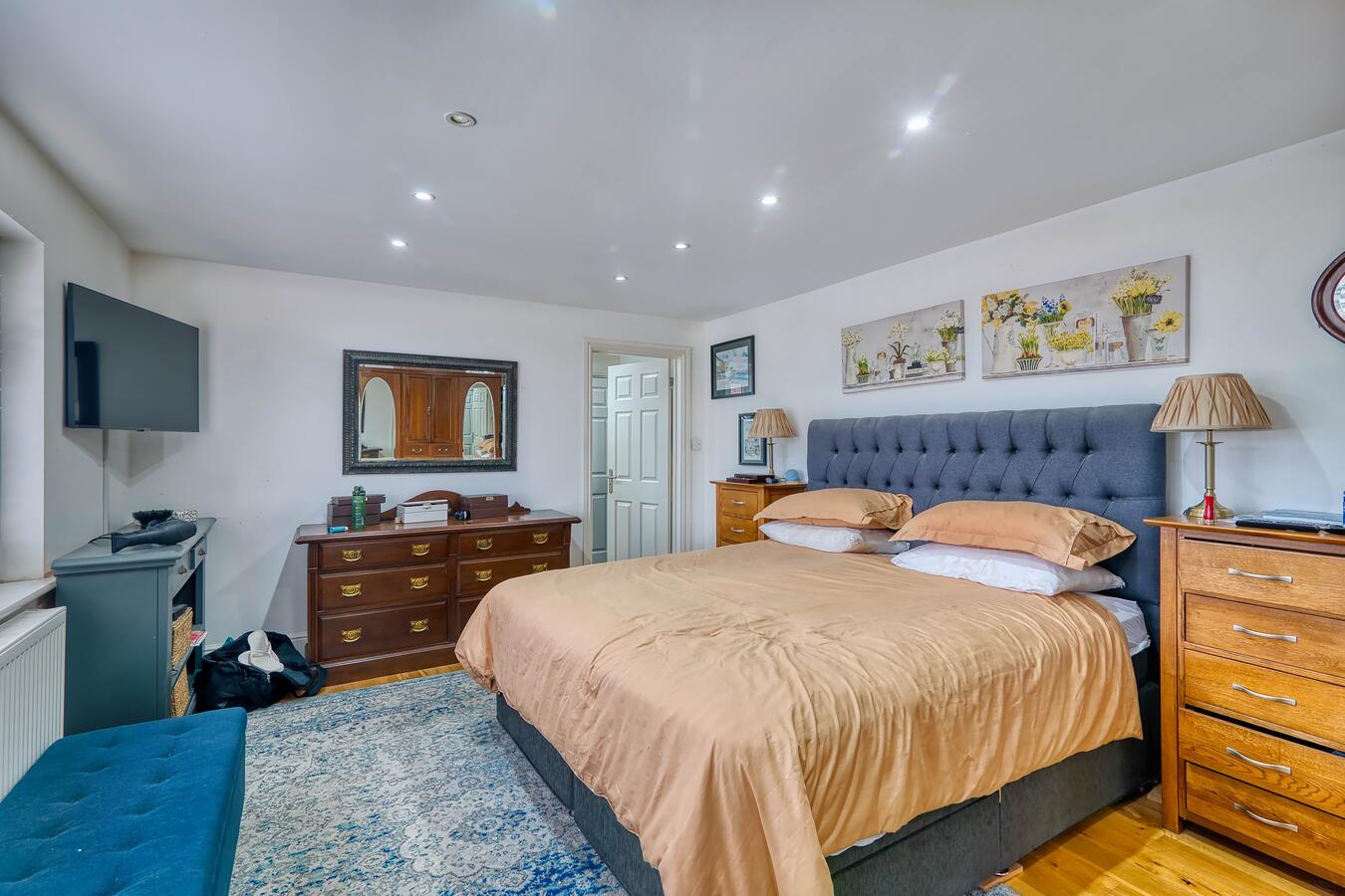 Practical for crews, the property includes two bathrooms on the ground floor and two upstairs, with easy access via the front, side or rear. Painting and decorating are permitted, offering flexibility for dressing and set builds. Driveway parking for up to five cars plus on-street parking on the quiet no through road make this an accessible, film-friendly location in Hertfordshire.