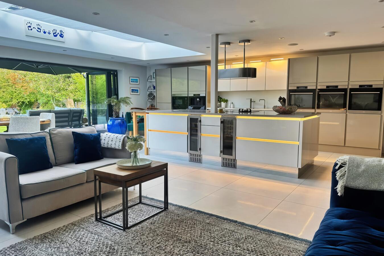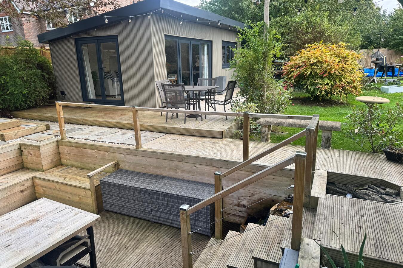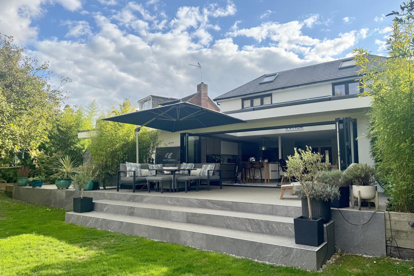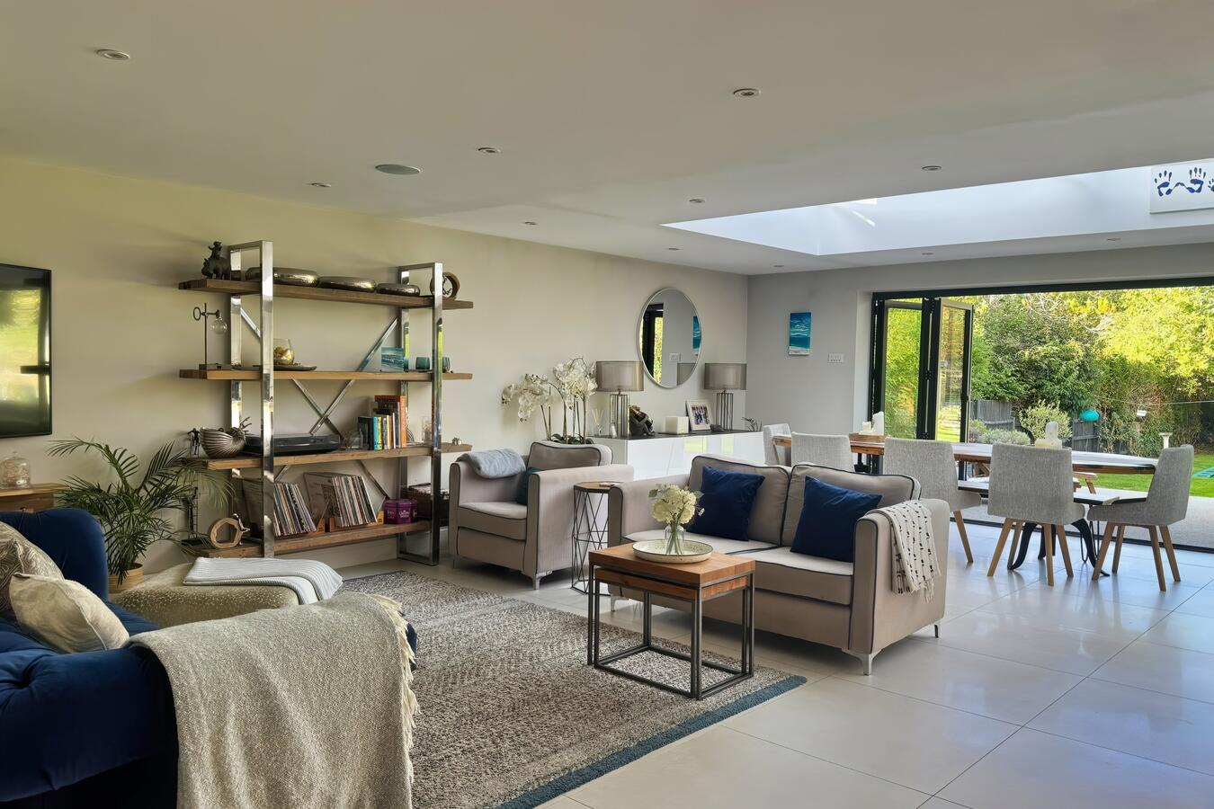 A spacious modern detached property offering four bedrooms, four bathrooms and a self-contained one-bedroom annexe, set within a beautifully landscaped third of an acre plot. Extensively renovated over the last four years, this bright and open family home provides a stylish and versatile backdrop for film, TV and photography.