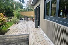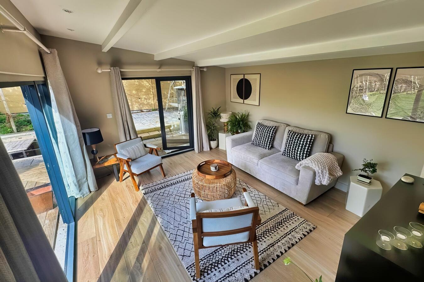 The self-contained garden suite, includes its own kitchen, bathroom and hot running water - perfect as a separate filming unit, green room or production base.