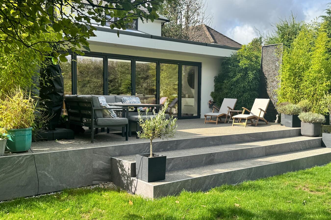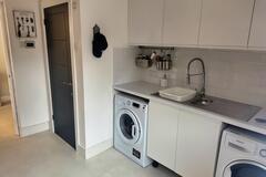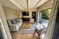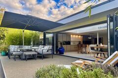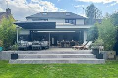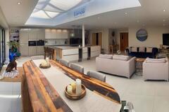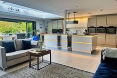 The heart of the house is the large open plan kitchen, living and dining space - ideal for entertaining scenes or lifestyle campaigns. The interiors are modern and welcoming, with clean lines and plenty of natural light. Outside, the parking area has been redesigned and the garden levelled to create a generous lawn and a contemporary social area complete with outdoor kitchen and seating.