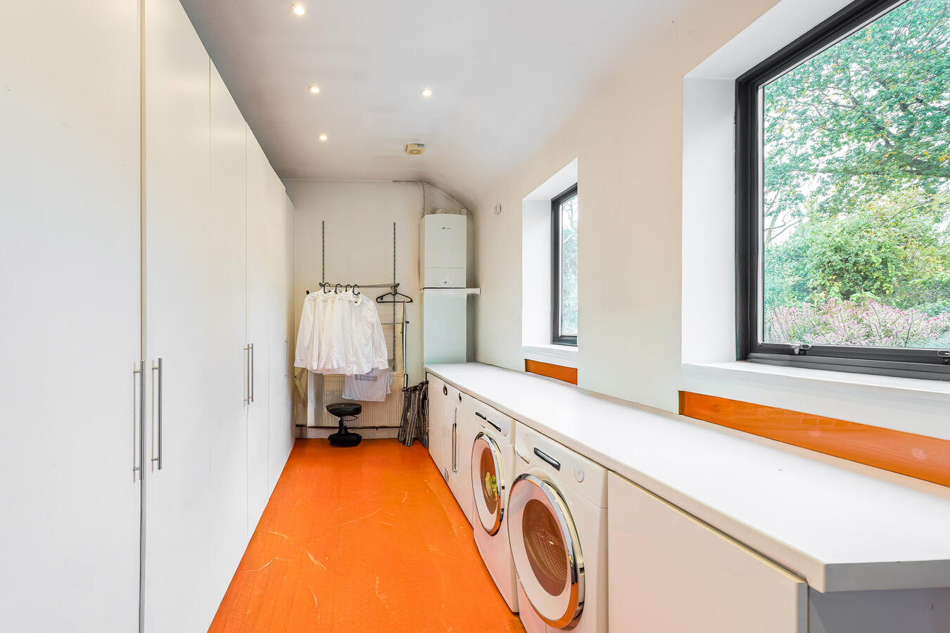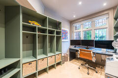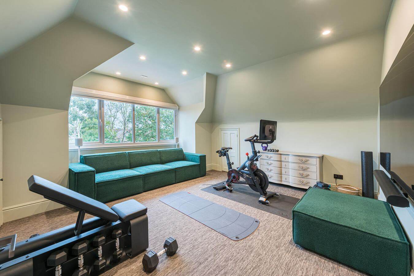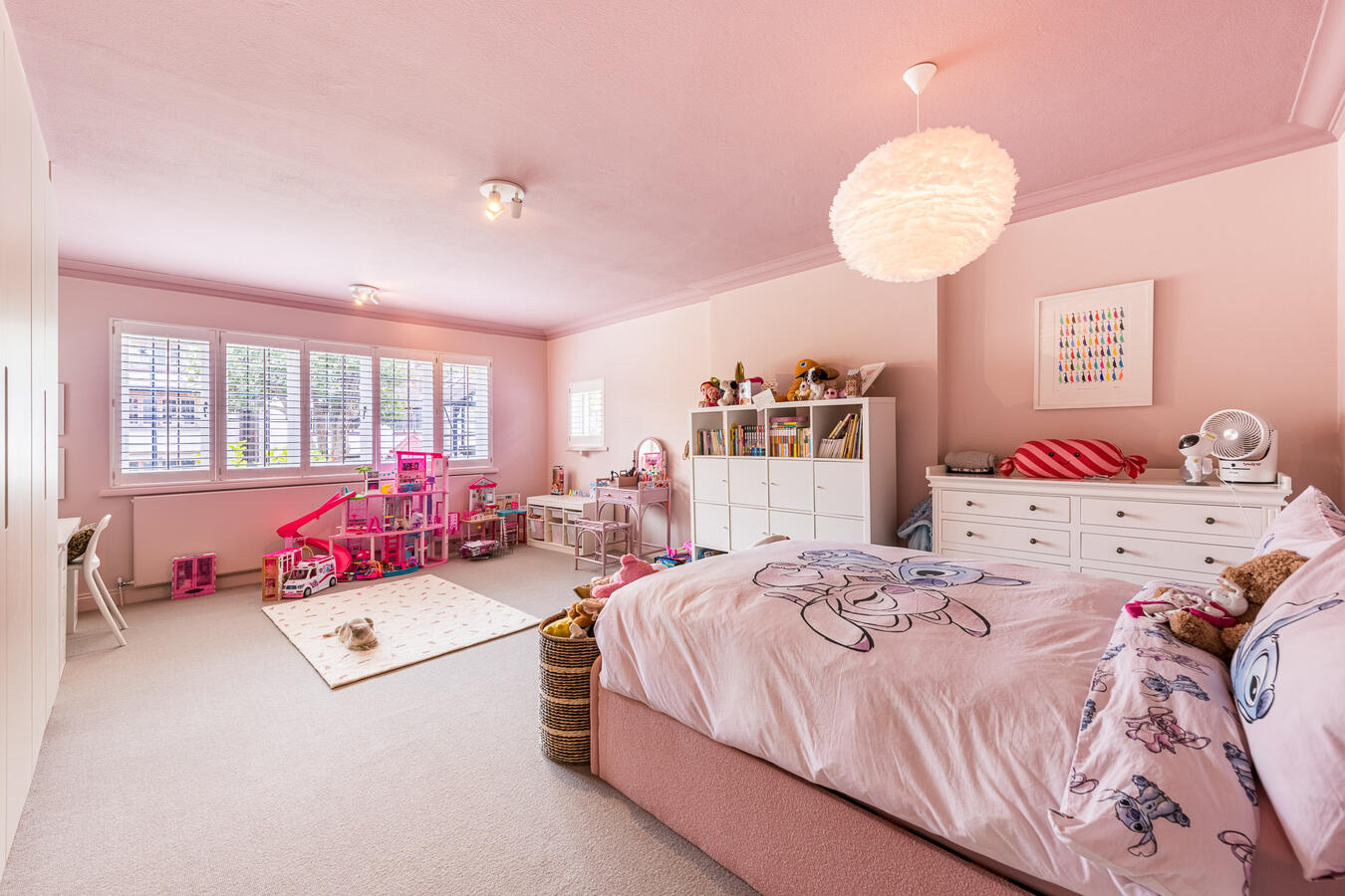 Upstairs, there are four bedrooms (including a playful pink children's room and a sophisticated master suite with walk-in wardrobe), three bathrooms, a study, gym, and utility. The layout and light make this property an excellent choice for commercials, editorial shoots, and lifestyle content.