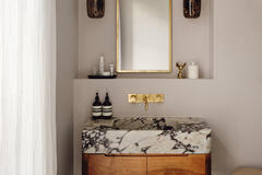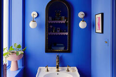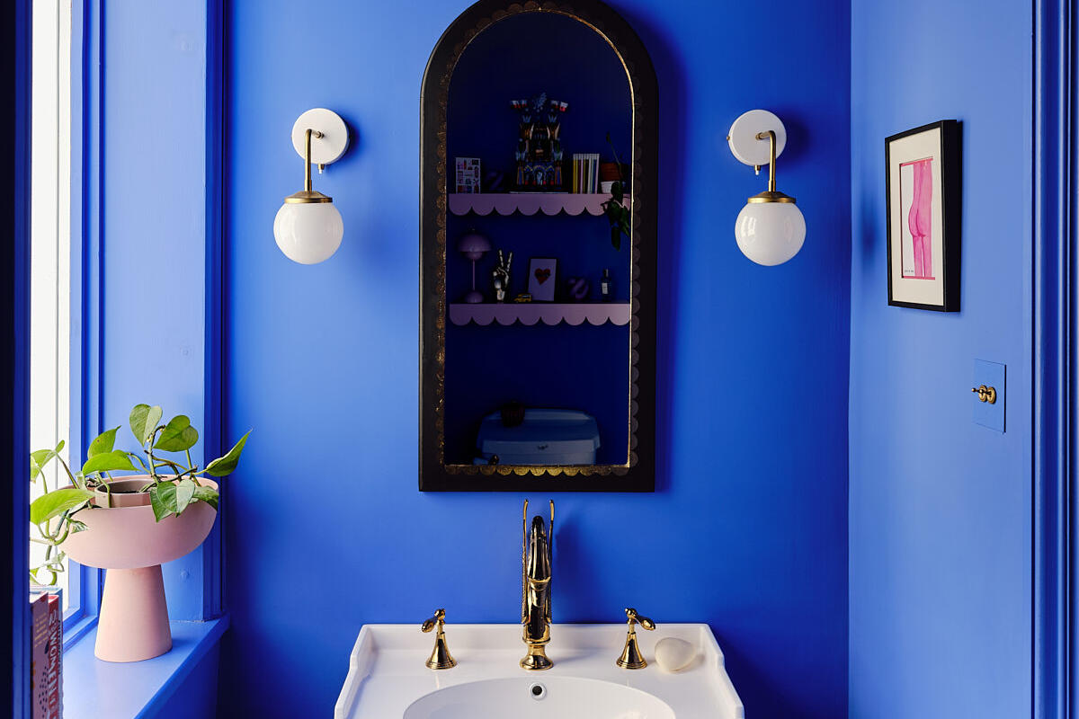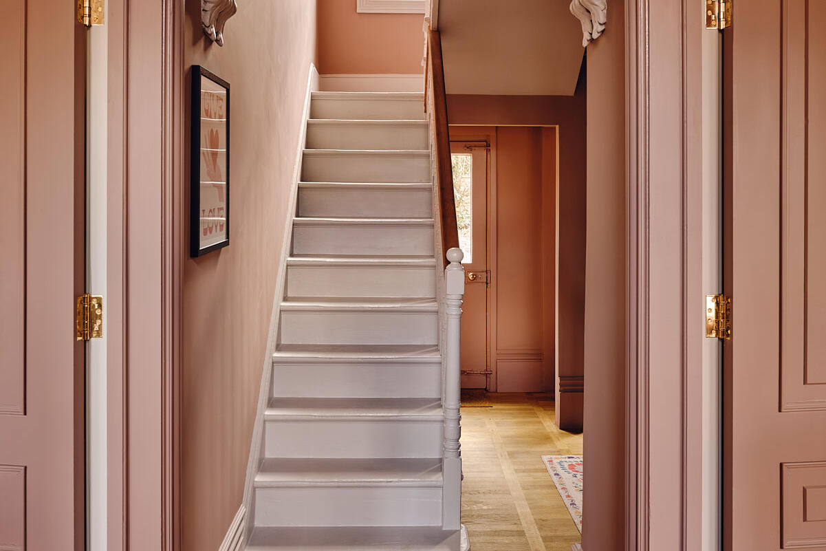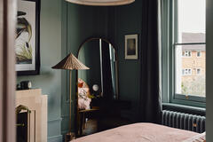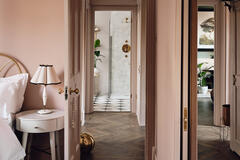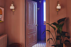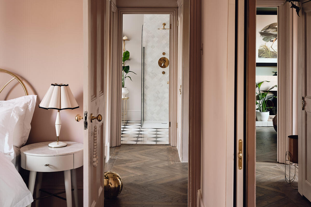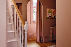 The layout includes a variety of versatile spaces well suited to editorial shoots, brand campaigns and narrative filming - from beautiful reception rooms and a striking open hallway with staircase, to thoughtfully styled bedrooms and dressing areas. Bathrooms and powder rooms range from soft, neutral finishes to bold, graphic colour moments, offering strong visual contrast within one location.