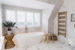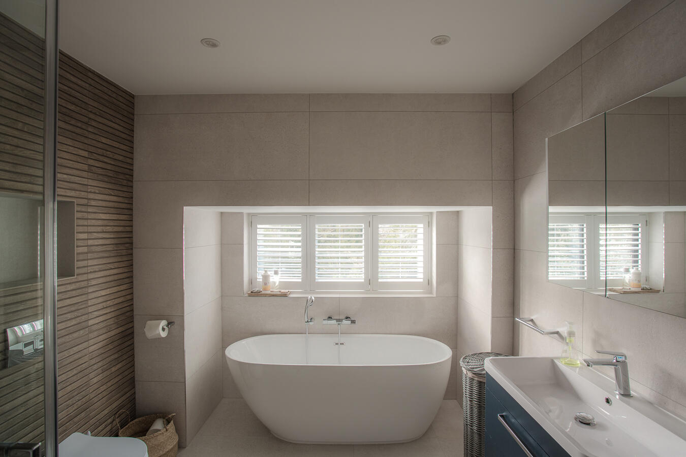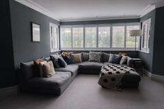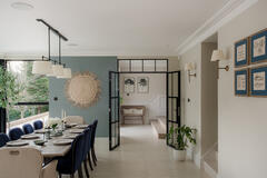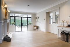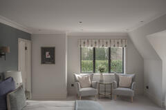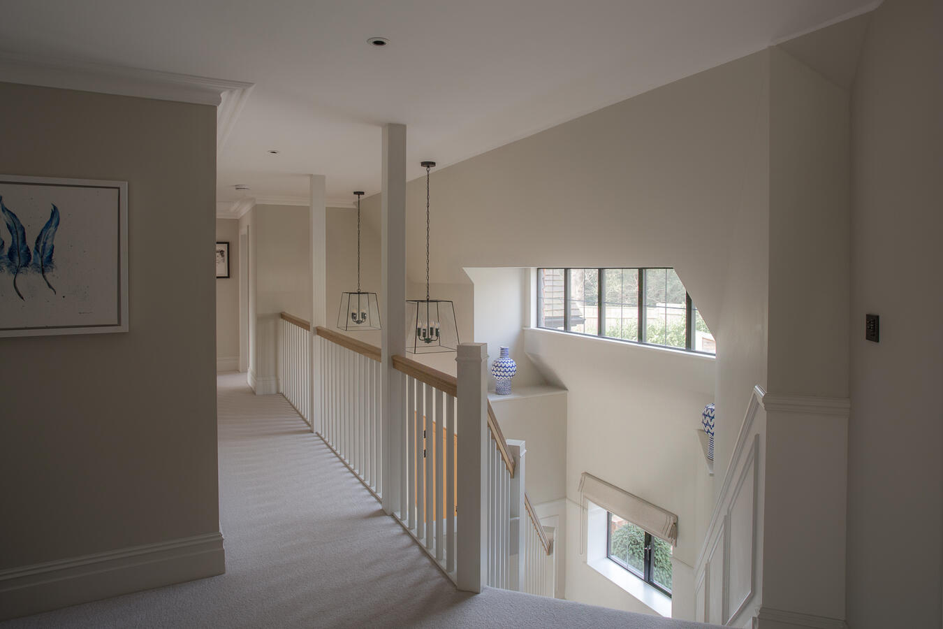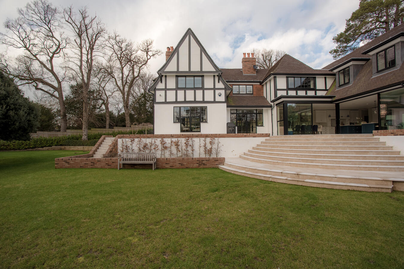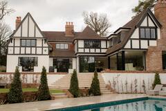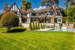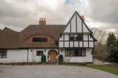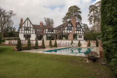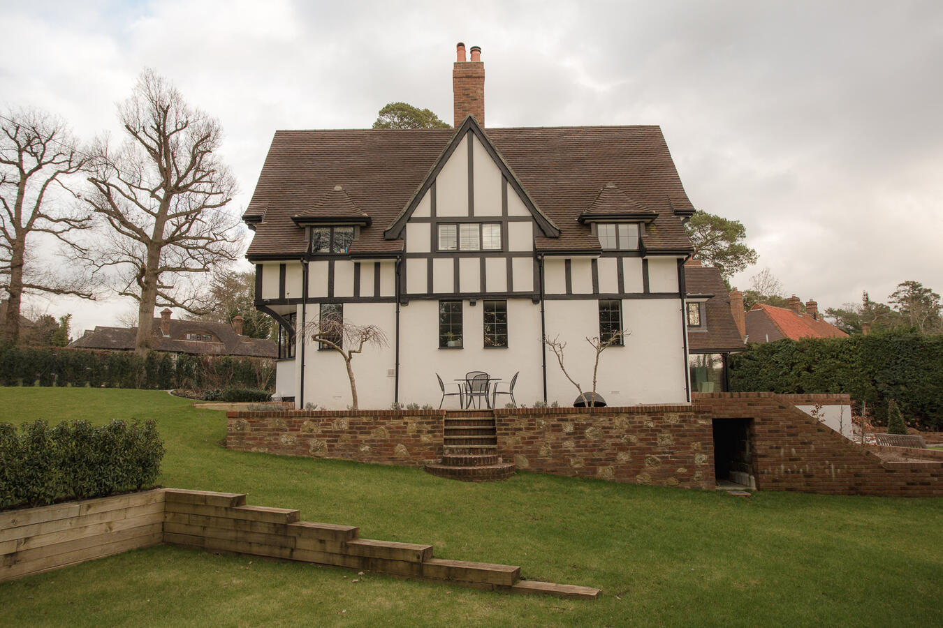 A substantial contemporary Arts & Crafts style house with elegant, modern interiors and expansive landscaped gardens. The property combines traditional architecture with light-filled, contemporary living spaces, offering a highly versatile backdrop for filming and photography.