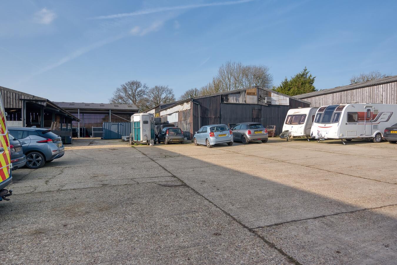 - Parking: 6 spaces on the main farm house driveway. 30 spaces on the hard standing areas for unit base.