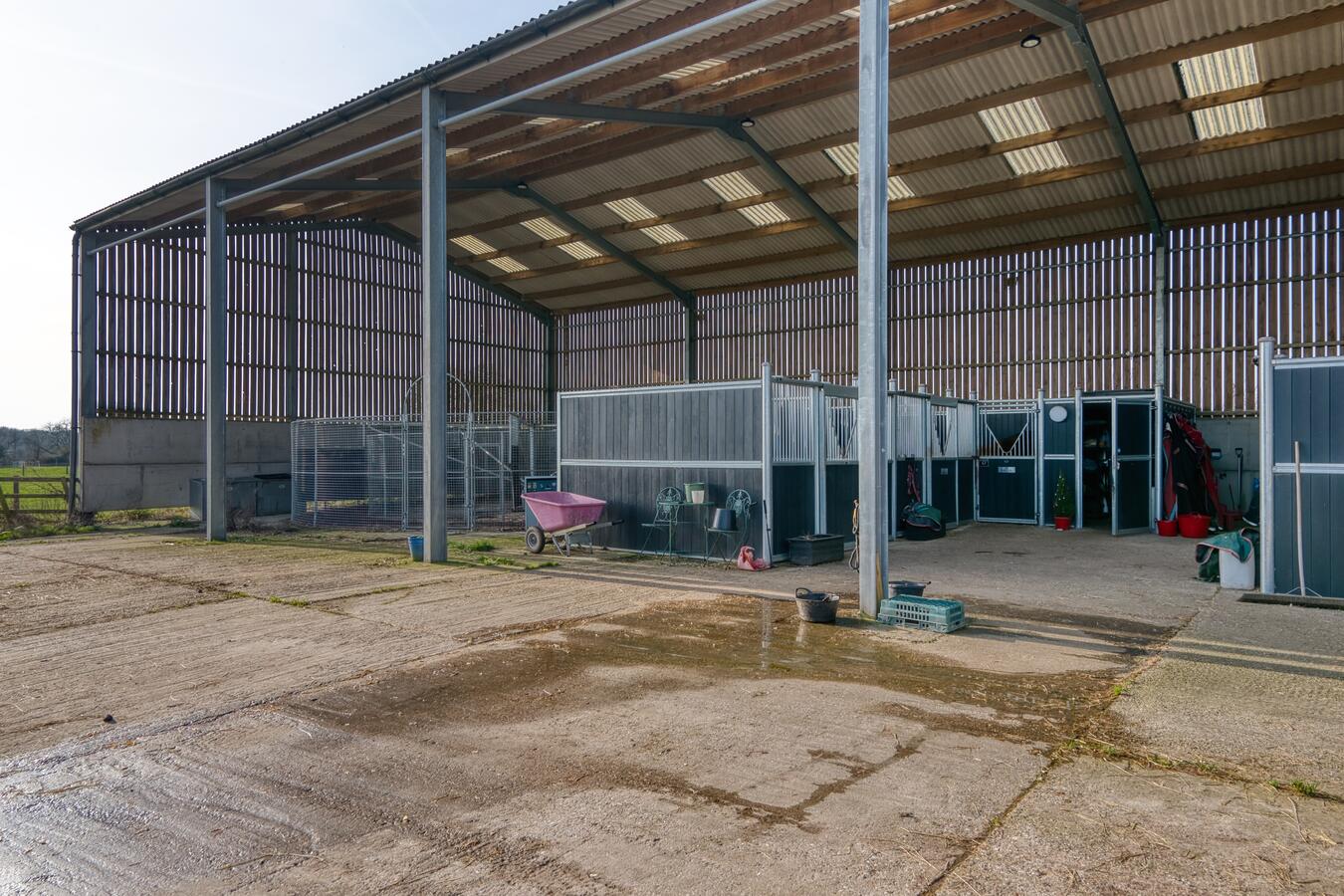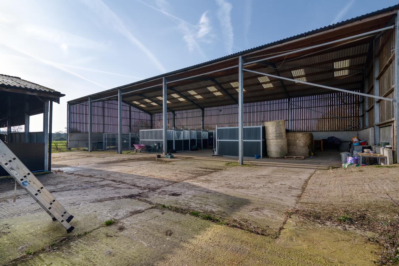 A 90-acre farm in Hertfordshire offering a wide range of spaces suitable for filming, photoshoots, prop storage and use as a production unit base. Located just 4.1 miles (approximately 10 minutes) from Warner Bros. Studios Leavesden, and within 20 miles of Elstree Studios and Pinewood Studios, the property is ideally positioned for productions shooting near major UK film studios.