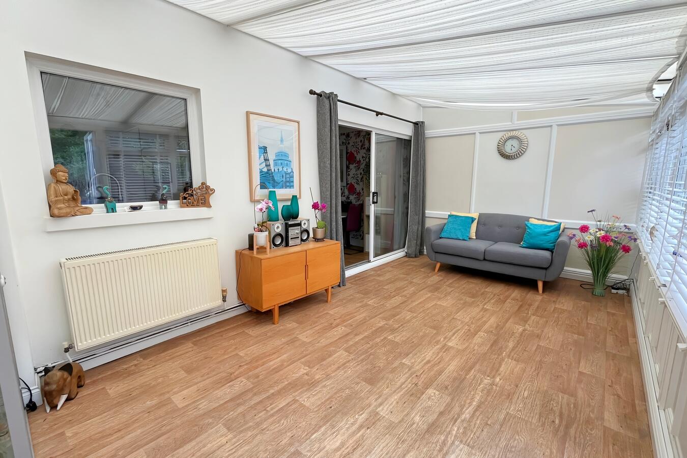 Externally the property has a driveway to the side providing parking for one vehicle. The rear garden is mature and enclosed, with astroturf and planted borders. At the rear of the garden, there is a garden cabin currently set up as a beauty treatment room, offering a distinctive additional space that could work well for wellness, salon or home business scenes.